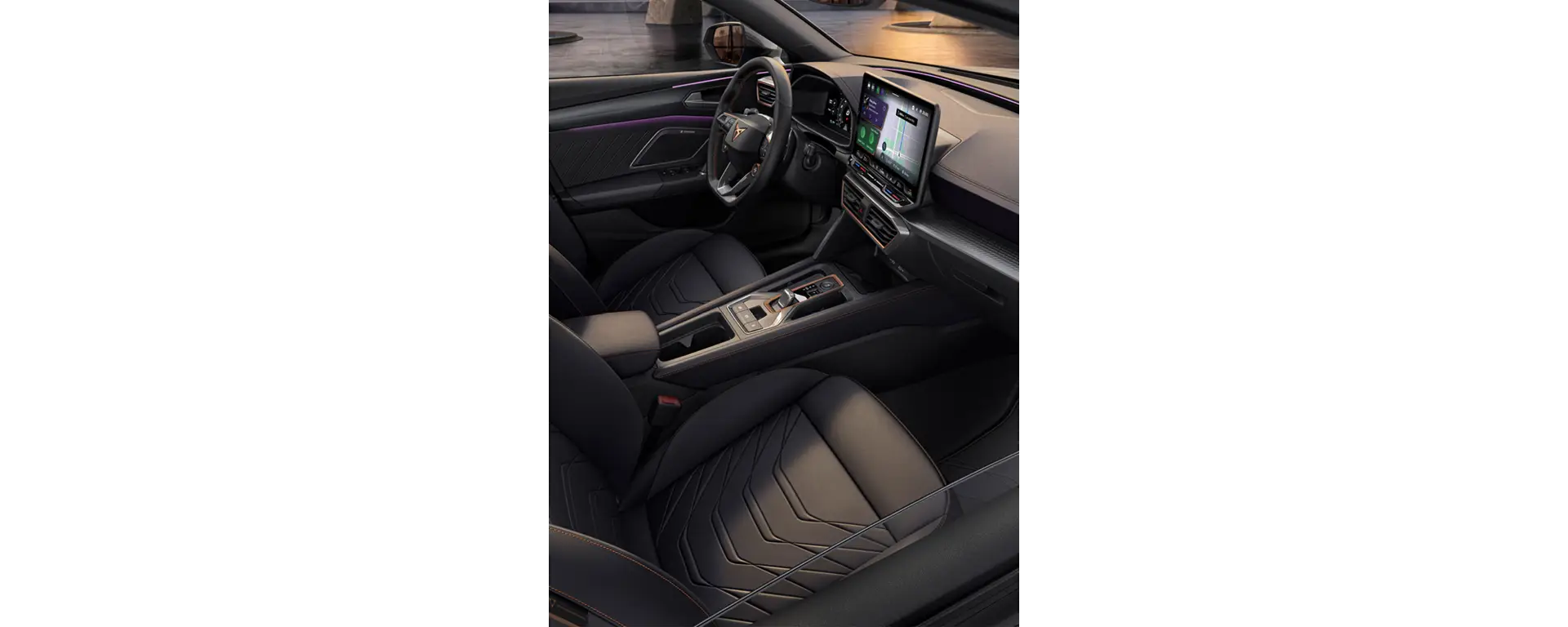 Scopri la connettività di CUPRA CONNECT con il sistema di infotainment da 12,9”. Segui comodamente la strada con le mappe online, goditi l’entertainment, interagisci attraverso il riconoscimento vocale e molto altro ancora.
