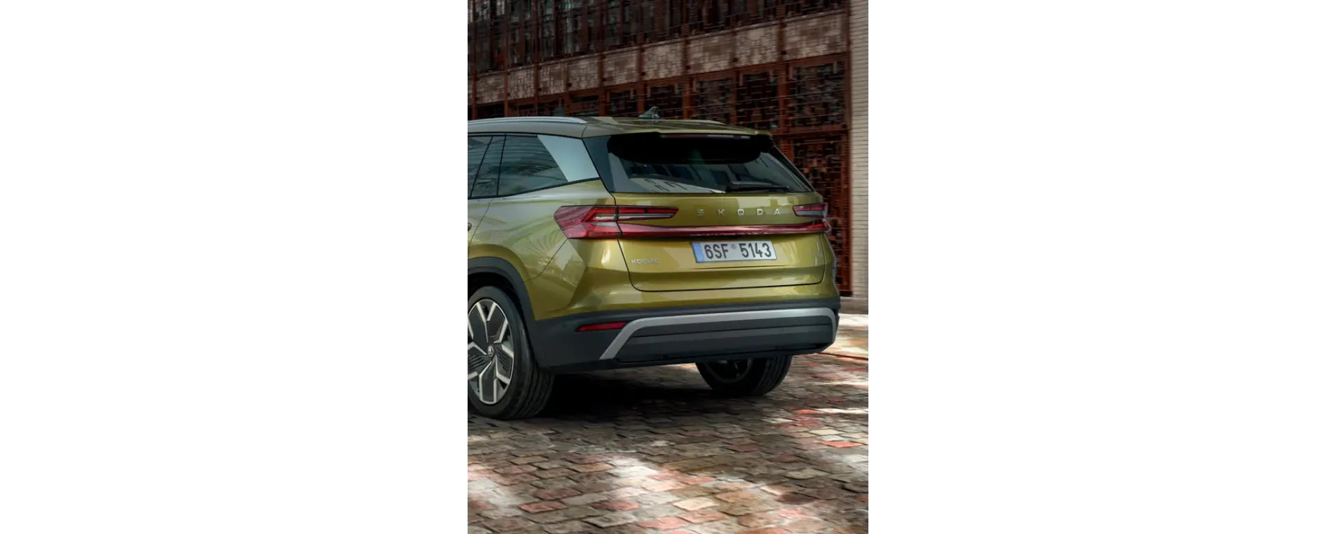 La sezione posteriore di Kodiaq è visivamente allargata dalle tradizionali luci posteriori a forma di C con indicatori di direzione dinamici, e dalla fascia rossa con struttura cristallina 3D che raccorda le luci posteriori. Questo componente, insieme al paraurti posteriore con ampio diffusore, conferisce a Kodiaq un'aura di unicità.